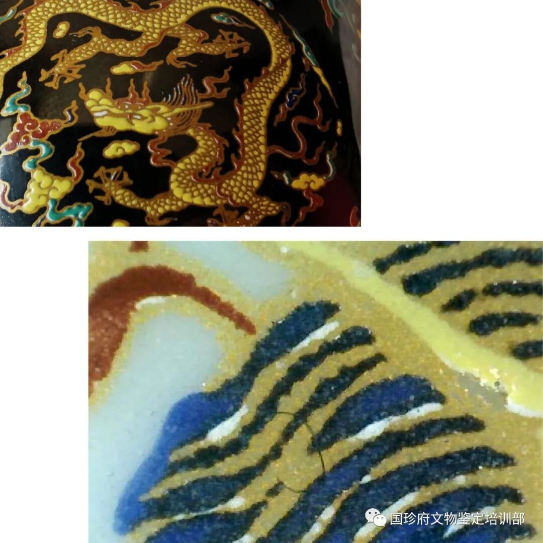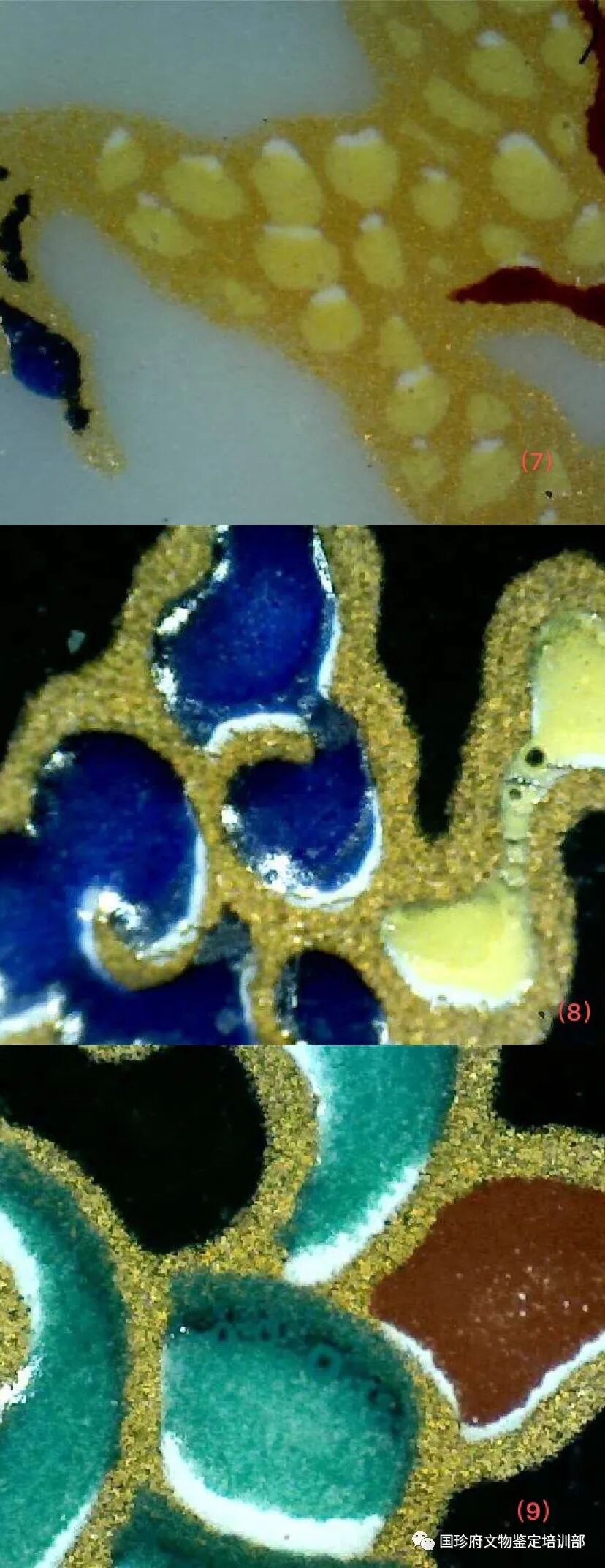至此,我们把常识问题放在一边,具体鉴定一下它的新老。首先鉴定杯上的图案和字迹上面黄灿灿、亮闪闪的东西是什么物质呢?(见图片5、6、7、8、9)