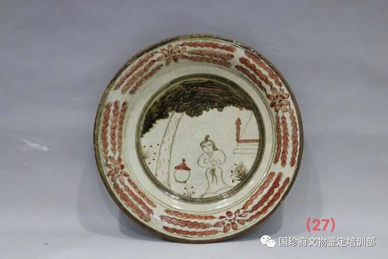 第四、此器的彩绘婴戏纹为釉下彩,所有红、黄、墨等诸色与唐宋时期材料及特征相符合。(见图片27、28、29、30、31)